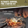 Fire Starter Kit - Ferro Rod, Striker, Tinder Rope, Bellow & Bag - Survival Gear for Camping, Bushcraft, Hiking & Emergency Use (15,000+ Strikes)