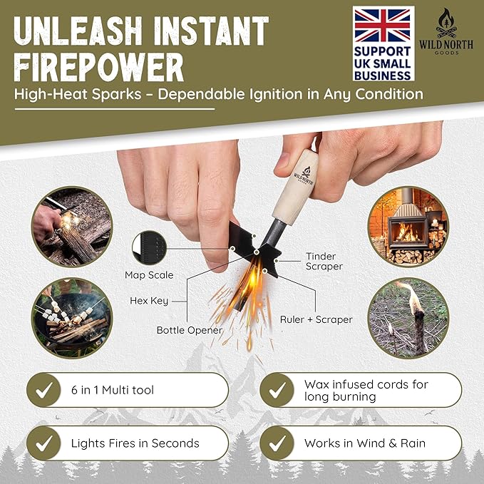 • Built by a UK Outdoor Brand You Can Trust: Crafted for durability and real-world use, this fire starter kit is made by a UK brand committed to quality survival gear. Ideal for bushcraft tools, prepper kits, and outdoor adventures, with no waste, no fuss, and no letdowns.