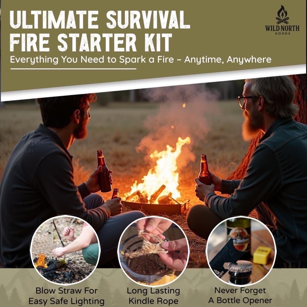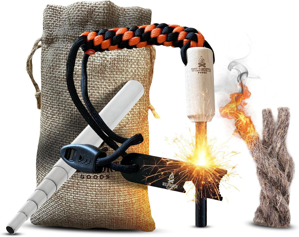 • Adventure-Ready Design, Rugged & Portable: Lightweight and built to last, this fire starter kit packs neatly into your backpack, glove box, or bug-out bag. The rustic burlap pouch keeps it protected and always within reach for camping, travel, or emergency use.